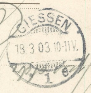 Alte Ansichtskarte aus Weilmünster, gelaufen am 18.03.1903 von Coblenz-Giessen (Bahnpost) nach Giessen. Ankunft in Giessen am 18.03.1903.