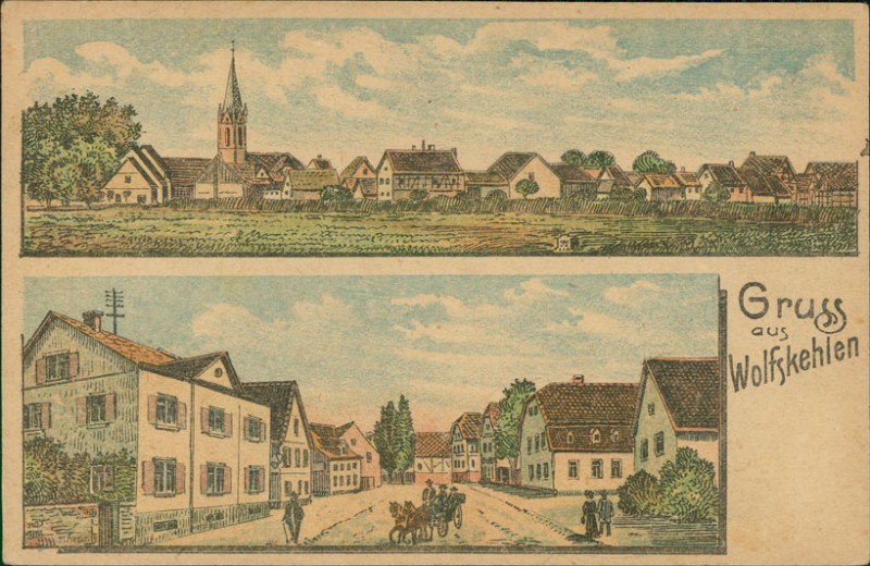 Alte Ansichtskarte aus Riedstadt-Wolfskehlen, ungebraucht, gedruckt um 1917.