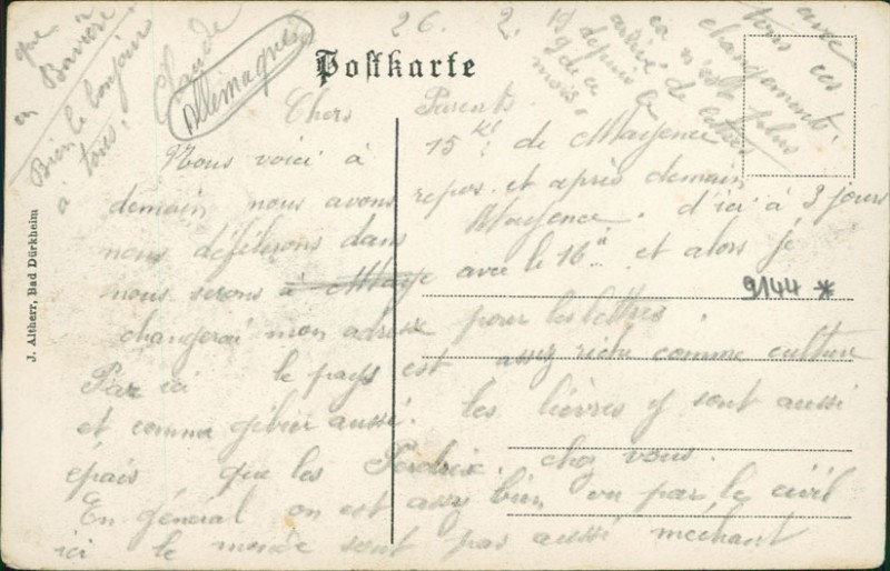 Alte Ansichtskarte aus Mehlingen-Neukirchen, beschrieben am 26.02.1919.