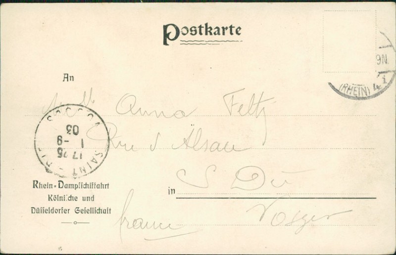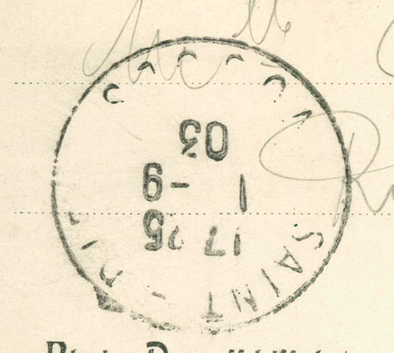 Alte Ansichtskarte, gelaufen um 1903. Ankunft in Saint-Die am 19.09.1903.