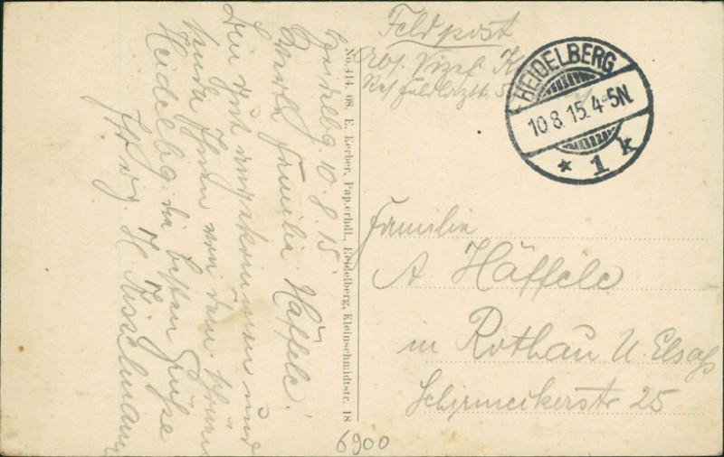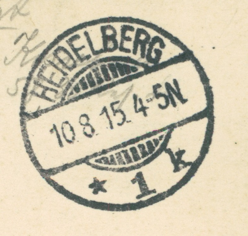 Alte Ansichtskarte aus Heidelberg, gelaufen am 10.08.1915 von Heidelberg nach Rothau.