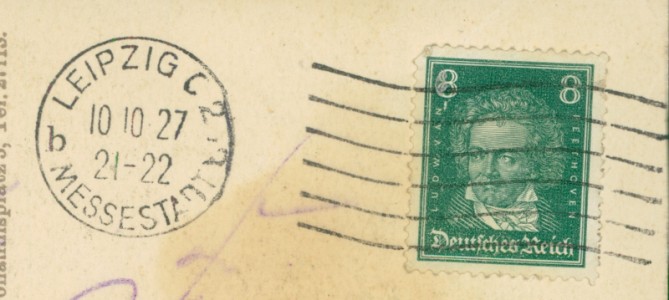 Alte Ansichtskarte aus Leipzig, gelaufen am 10.10.1927 von Leipzig (Messestadt) nach Dresden A.