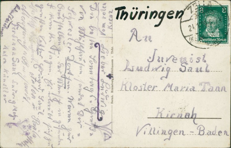 Alte Ansichtskarte aus Mühlhausen/Thüringen, gelaufen am 24.01.1929 von Zella nach Villingen.