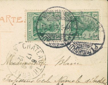 Alte Ansichtskarte aus Mühlhausen/Thüringen, gelaufen am 15.09.1912 von Mühlhausen (Thüring.) nach Château-Thierry.
