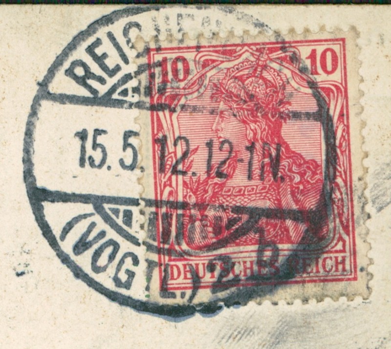 Alte Ansichtskarte aus Reichenbach im Vogtland, gelaufen am 15.05.1912 von Reichenbach (Vogtl.) nach Paris. Ankunft in Paris am 16.05.1912.