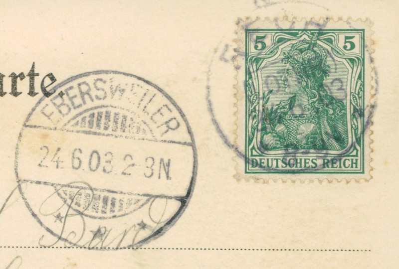 Alte Ansichtskarte aus Rech, gelaufen am 24.06.1903 von Rech nach Ebersweiler. Ankunft in Ebersweiler am 24.06.1903.