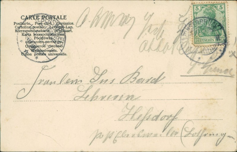 Alte Ansichtskarte aus Bingen, gelaufen um 1903 von Bingen nach Ebersweiler.
