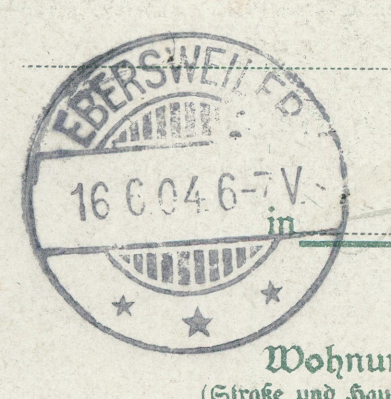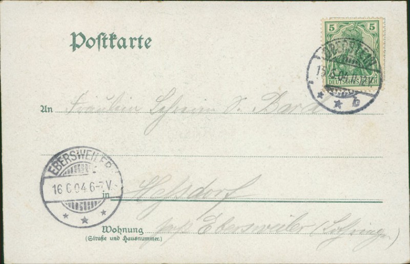 Alte Ansichtskarte aus Oberstein, gelaufen am 15.06.1904 von Oberstein nach Ebersweiler. Ankunft in Ebersweiler am 16.06.1904.