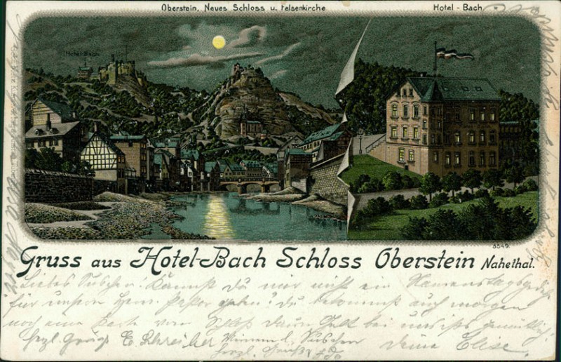 Oberstein, Neues Schloss u. Felsenkirche, Hotel-Bach