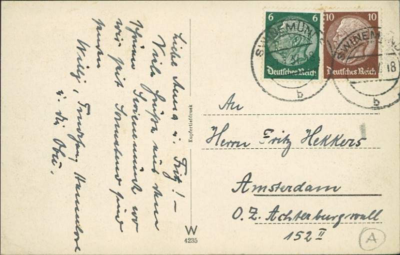 Alte Ansichtskarte aus Swinemünde / Świnoujście, gelaufen am 07.07.1937 von Swinemünde nach Amsterdam (Niederlande).