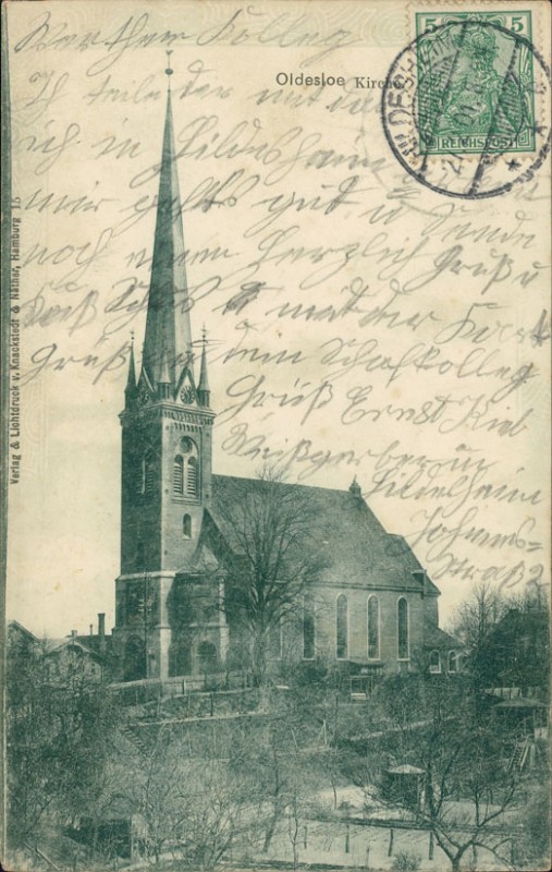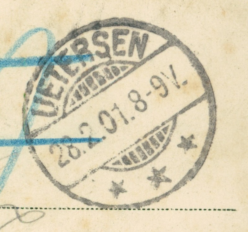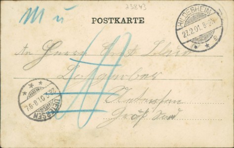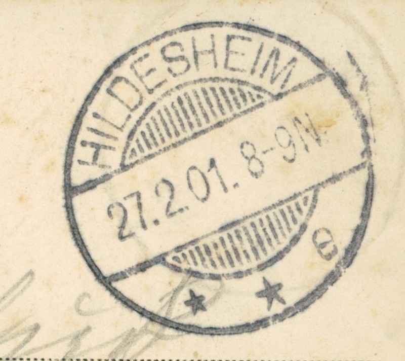 Alte Ansichtskarte aus Bad Oldesloe, gelaufen am 27.02.1901 von Hildesheim nach Uetersen. Ankunft in Uetersen am 28.02.1901.