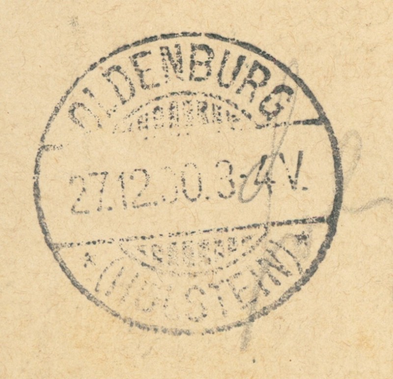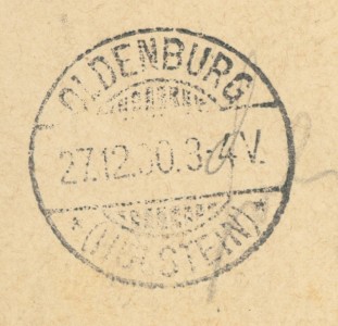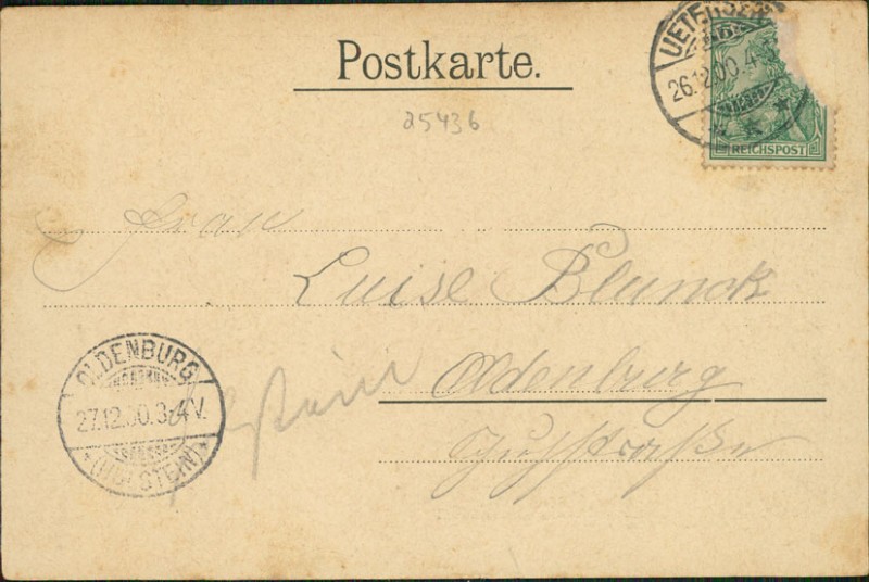 Alte Ansichtskarte aus Uetersen, gelaufen am 26.12.1900 von Uetersen nach Oldenburg (Holstein). Ankunft in Oldenburg (Holstein) am 27.12.1900.