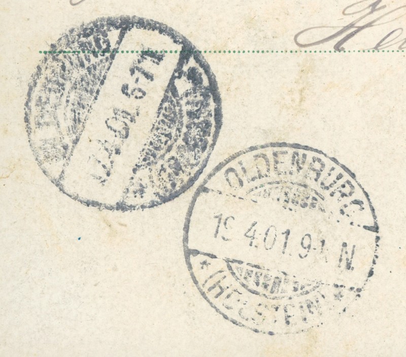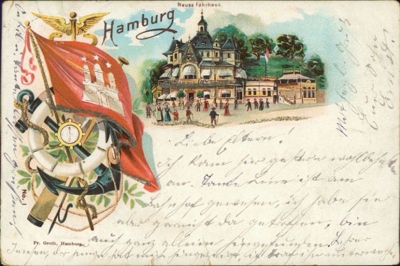 Alte Ansichtskarte aus Hamburg, gelaufen am 17.04.1901 von Hamburg-Eimsbüttel nach Oldenburg (Holstein). Ankunft in Oldenburg (Holstein) am 19.04.1901.