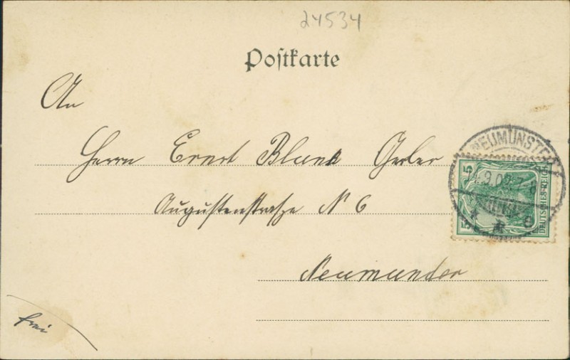 Alte Ansichtskarte aus Neumünster, gelaufen am 14.09.1902 von Neumünster nach Neumünster.
