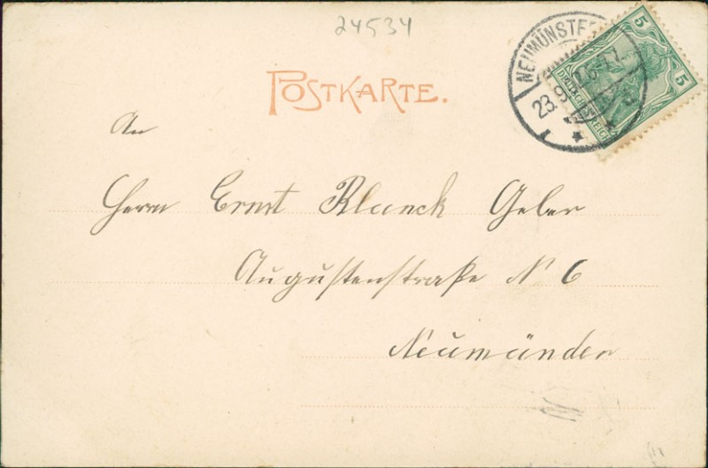 Alte Ansichtskarte aus Neumünster, gelaufen am 23.09.1902 von Neumünster nach Neumünster.