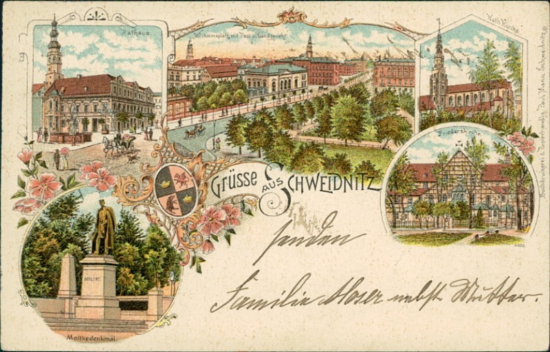 Alte Ansichtskarte aus Schweidnitz / Świdnica, gelaufen am 18.05.1902 von Schweidnitz nach Berlin.