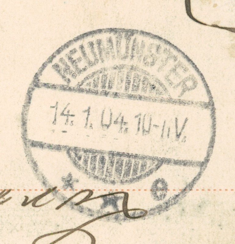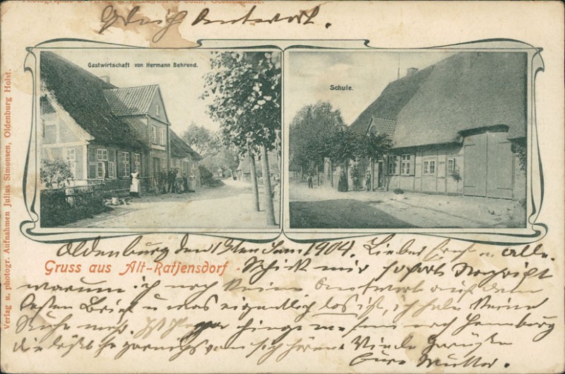 Alte Ansichtskarte aus Riepsdorf-Altratjensdorf, gelaufen am 13.01.1904 von Lensahn nach Neumünster. Ankunft in Neumünster am 14.01.1904.