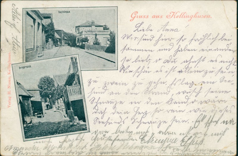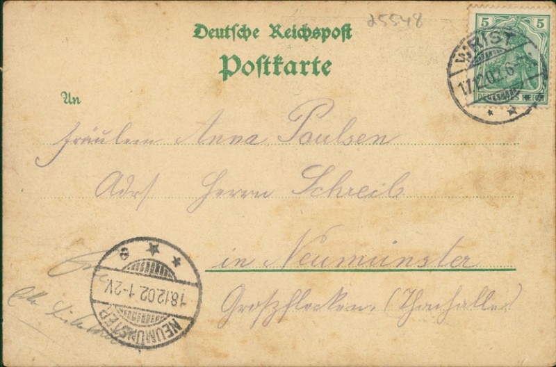 Alte Ansichtskarte aus Kellinghusen, gelaufen um 0 von Wrist nach Neumünster. Ankunft in Neumünster am 18.12.1902.