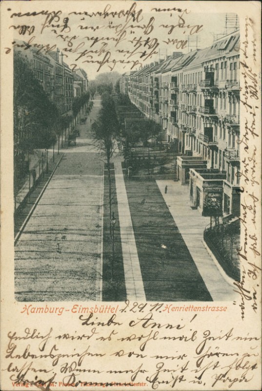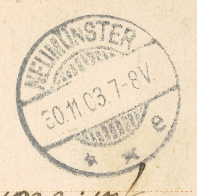 Alte Ansichtskarte aus Hamburg-Eimsbüttel, gelaufen am 30.11.1903 von Hamburg nach Neumünster. Ankunft in Neumünster am 30.11.1903.