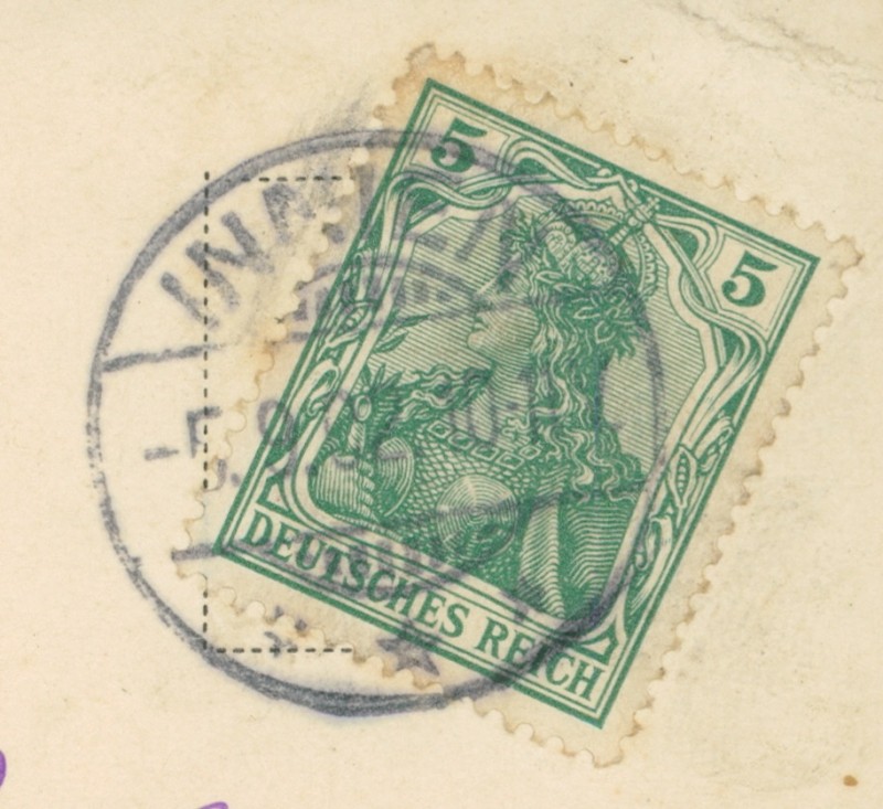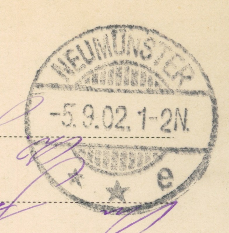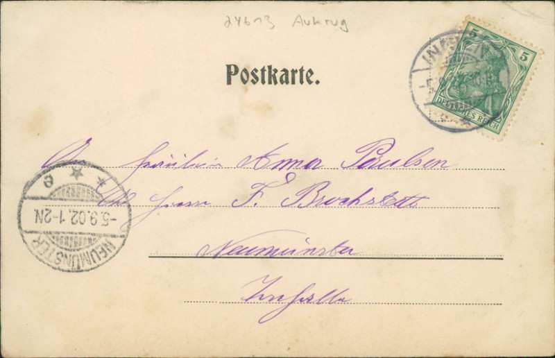 Alte Ansichtskarte aus Aukrug-Innien, gelaufen am 05.09.1902 von Innien nach Neumünster. Ankunft in Neumünster am 05.09.1902.
