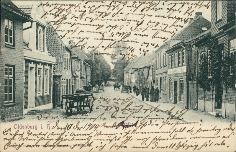 Alte Ansichtskarte aus Oldenburg in Holstein, gelaufen am 11.12.1904 von Oldenburg (Holstein) nach Neumünster. Ankunft in Neumünster am 12.12.1904.