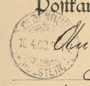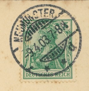 Alte Ansichtskarte aus Neumünster, gelaufen am 09.04.1903 von Neumünster nach Oldenburg (Holstein). Ankunft in Oldenburg (Holstein) am 10.04.1903.