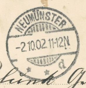 Alte Ansichtskarte aus Neumünster, gelaufen am 02.10.1902 von Neumünster nach Neumünster. Ankunft in Neumünster am 02.10.1902.