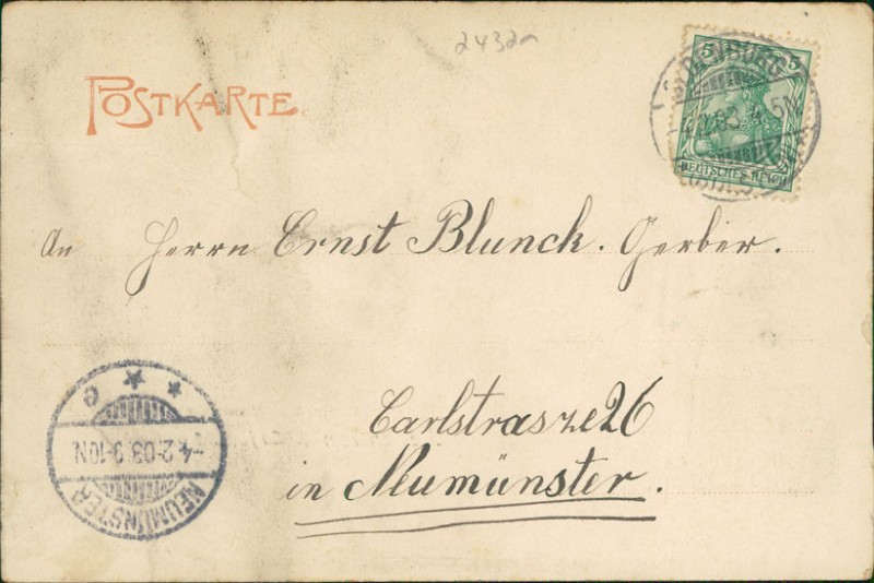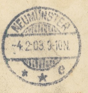 Alte Ansichtskarte aus Lütjenburg, gelaufen am 04.02.1903 von Oldenburg (Holstein) nach Neumünster. Ankunft in Neumünster am 04.02.1903.