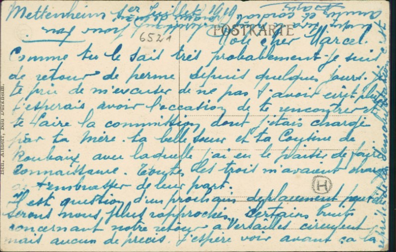 Alte Ansichtskarte aus Mettenheim, beschrieben am 01.07.1919.