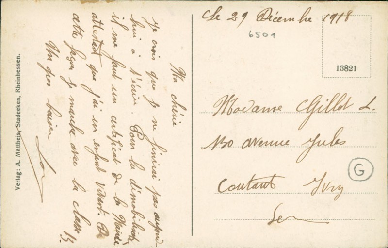 Alte Ansichtskarte aus Stadecken-Elsheim, beschrieben am 29.12.1918.