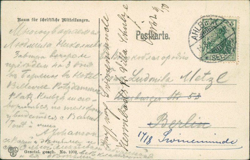 Alte Ansichtskarte aus Heringsdorf-Ahlbeck, gelaufen am 13.08.1906 von Ahlbeck (Seebad) nach Berlin.