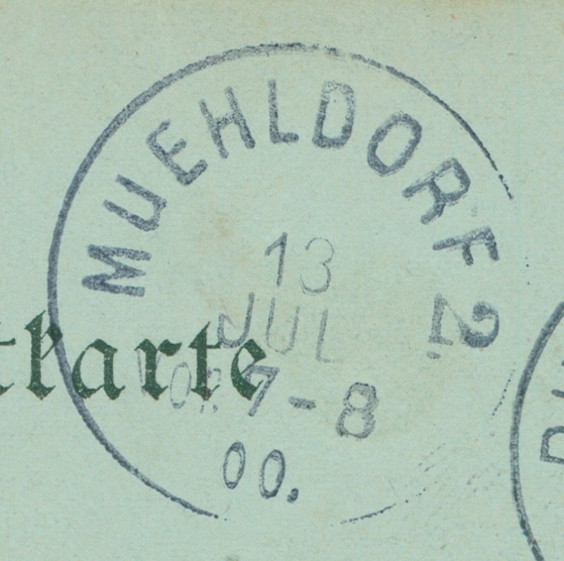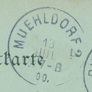 Alte Ansichtskarte aus Ruhpolding, gelaufen am 12.07.1900 von Ruhpolding nach Muehldorf. Ankunft in Muehldorf am 13.07.1900.