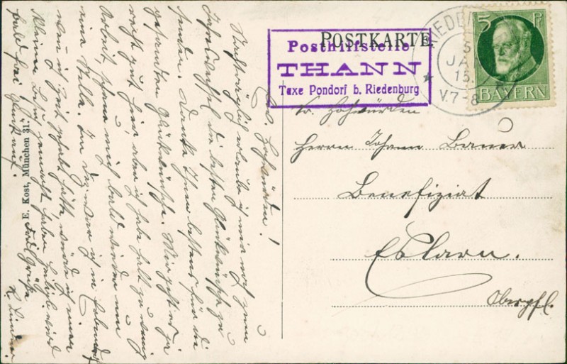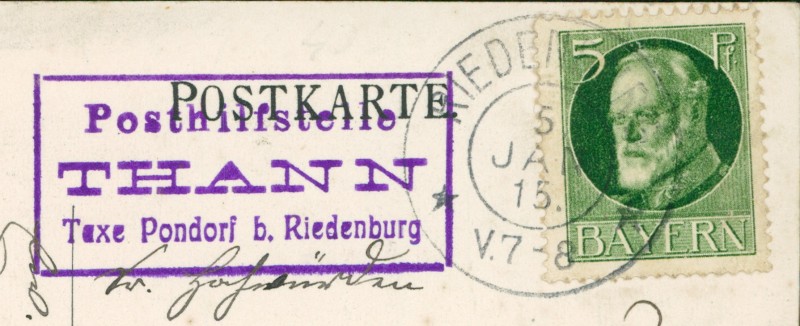 | Stempel | Riedenburg (Posthilfstelle Thann Taxe Pondorf b. Riedenburg) |