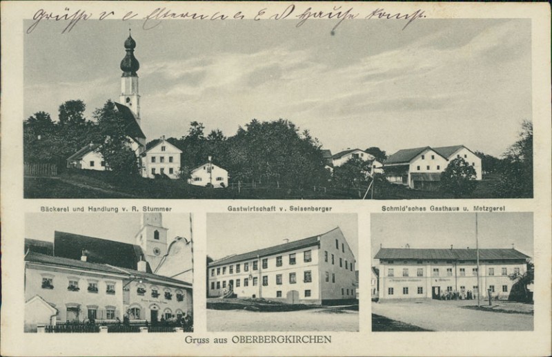 Alte Ansichtskarte aus Oberbergkirchen, gelaufen am 18.09.1919 von Ampfing nach Burghausen.