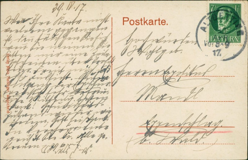 Alte Ansichtskarte aus Wegscheid, gelaufen am 30.06.1917.
