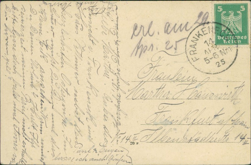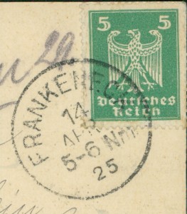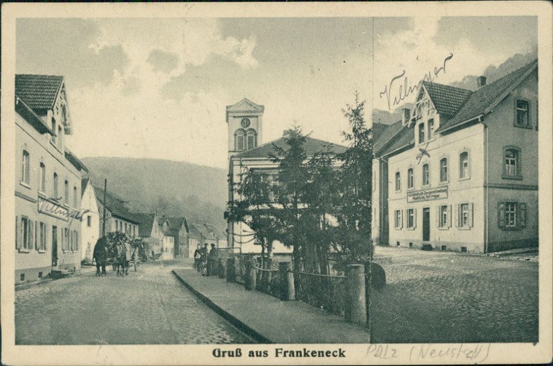 Alte Ansichtskarte aus Frankeneck, gelaufen am 14.04.1925 von Frankeneck nach Frankfurt.