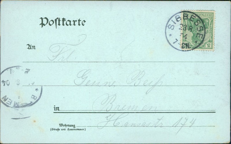 Alte Ansichtskarte aus Sibbesse, gelaufen am 28.08.1904 von Sibbesse nach Bremen.