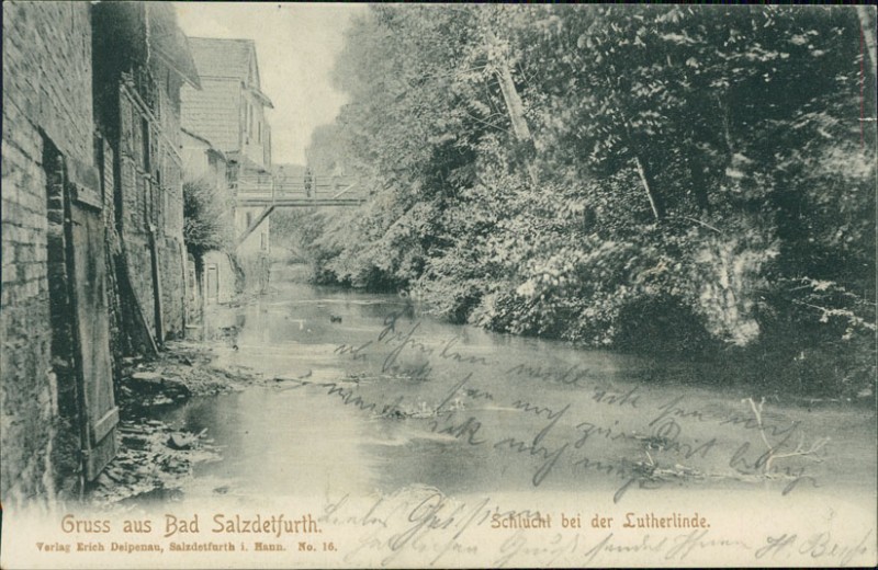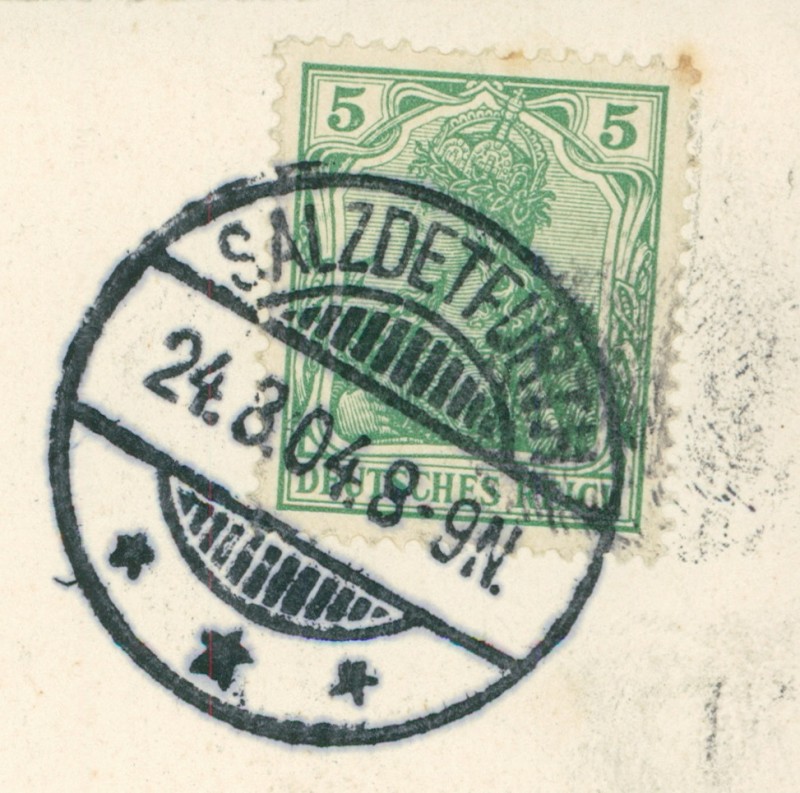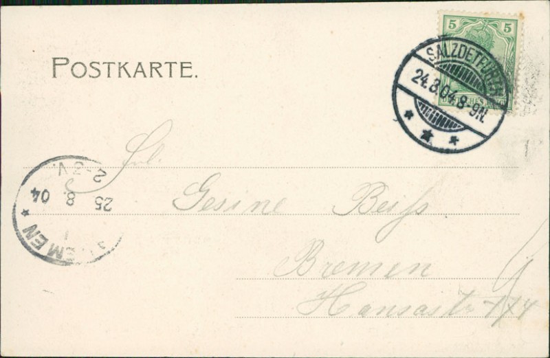 Alte Ansichtskarte aus Bad Salzdetfurth, gelaufen am 24.08.1904 von Salzdetfurth nach Bremen. Ankunft in Bremen am 25.08.1904.
