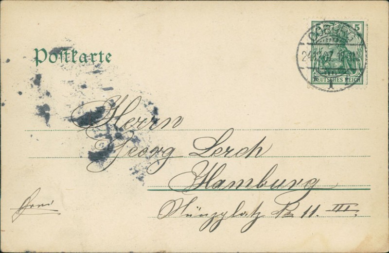 Alte Ansichtskarte aus Coburg, gelaufen am 24.12.1907 von Coburg nach Hamburg.