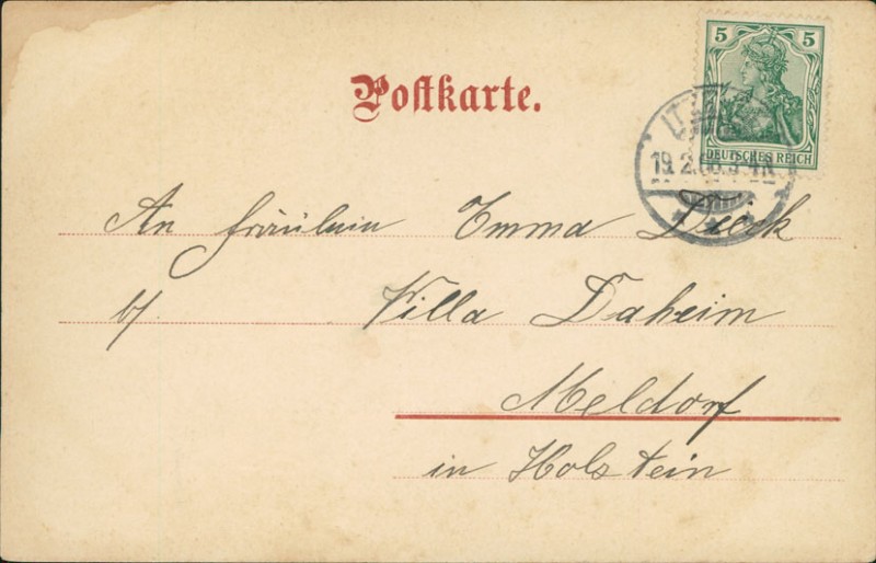 Alte Ansichtskarte aus Itzehoe, gelaufen am 19.02.1908 von Itzehoe nach Meldorf.