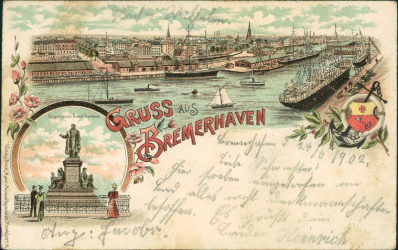 Alte Ansichtskarte aus Bremerhaven, gelaufen am 25.06.1902 von Bremerhaven nach Bremen.
