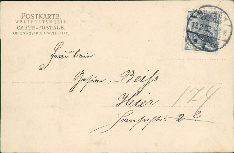 Alte Ansichtskarte aus Bremen, gelaufen am 13.02.1903 von Bremen nach Bremen.