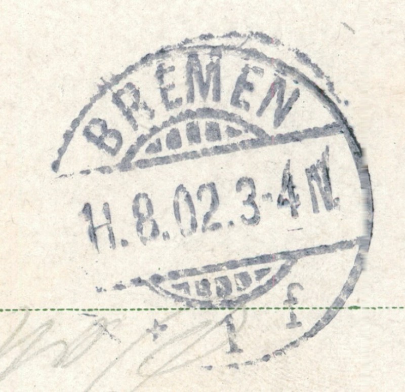 Alte Ansichtskarte aus Bremen, gelaufen am 11.08.1902 von Hannover-Geestemünde (Bahnpost) nach Bremen. Ankunft in Bremen am 11.08.1902.