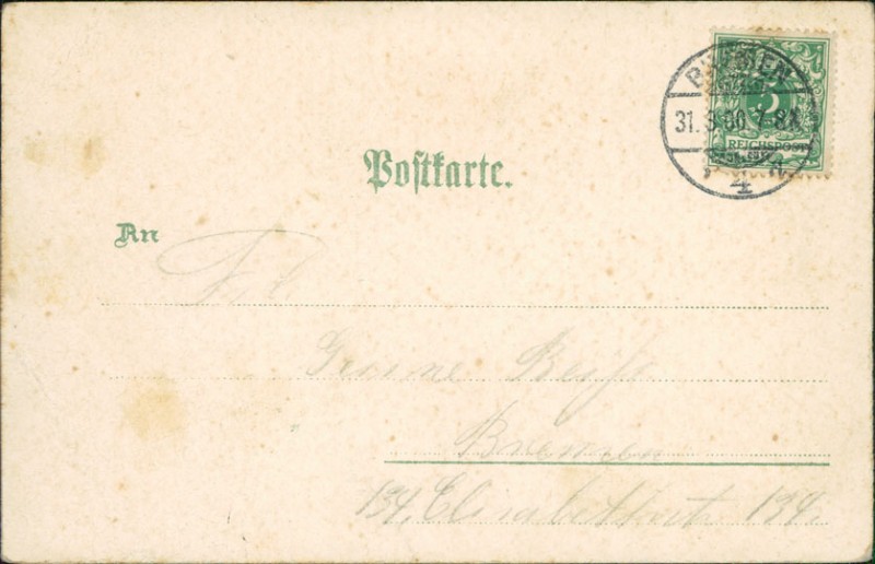 Alte Ansichtskarte aus Bremen, gelaufen am 31.03.1900 von Bremen nach Bremen.