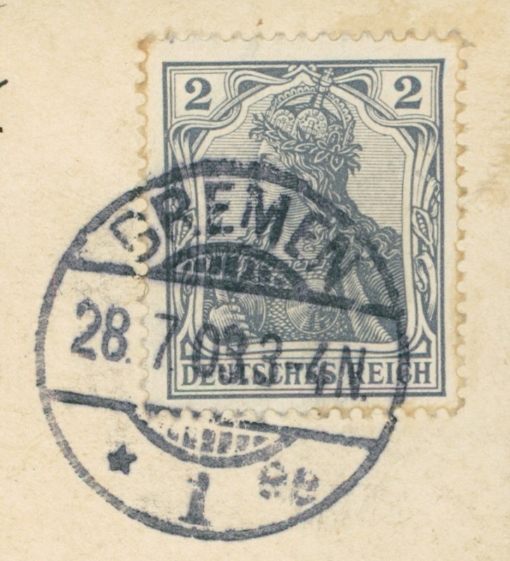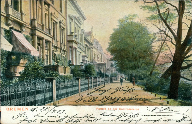 Alte Ansichtskarte aus Bremen, gelaufen am 28.07.1903 von Bremen nach Bremen.