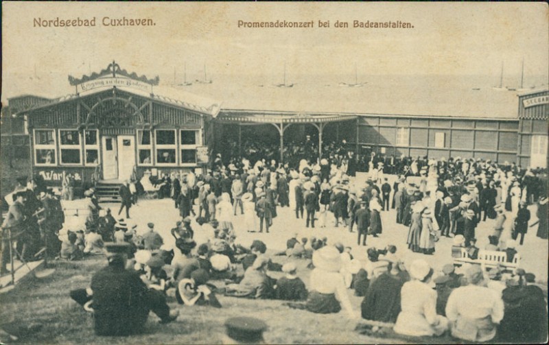 Alte Ansichtskarte aus Cuxhaven, gelaufen am 07.11.1908 von Cuxhaven nach Lübeck.