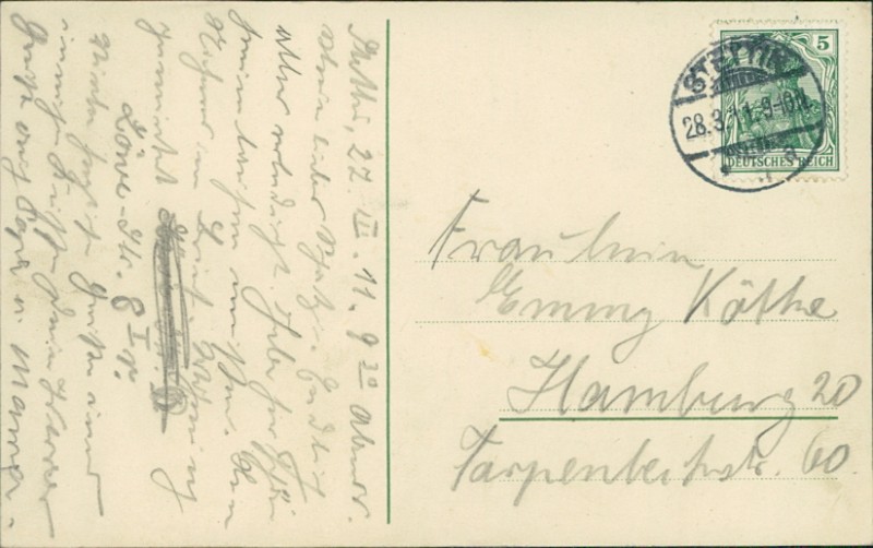 Alte Ansichtskarte aus Stettin / Szczecin, gelaufen am 28.03.1911 von Stettin nach Hamburg.