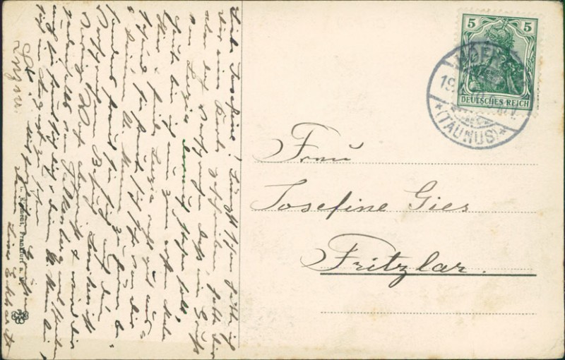 Alte Ansichtskarte aus Hofheim am Taunus, gelaufen am 19.06.1910 von Hofheim (Taunus) nach Fritzlar.