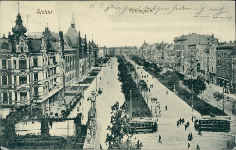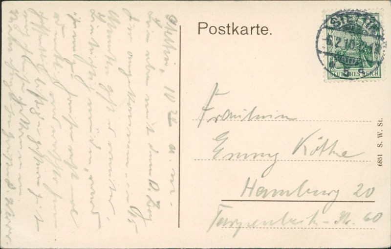 Alte Ansichtskarte aus Stettin / Szczecin, gelaufen am 06.02.1910 von Stettin nach Hamburg.