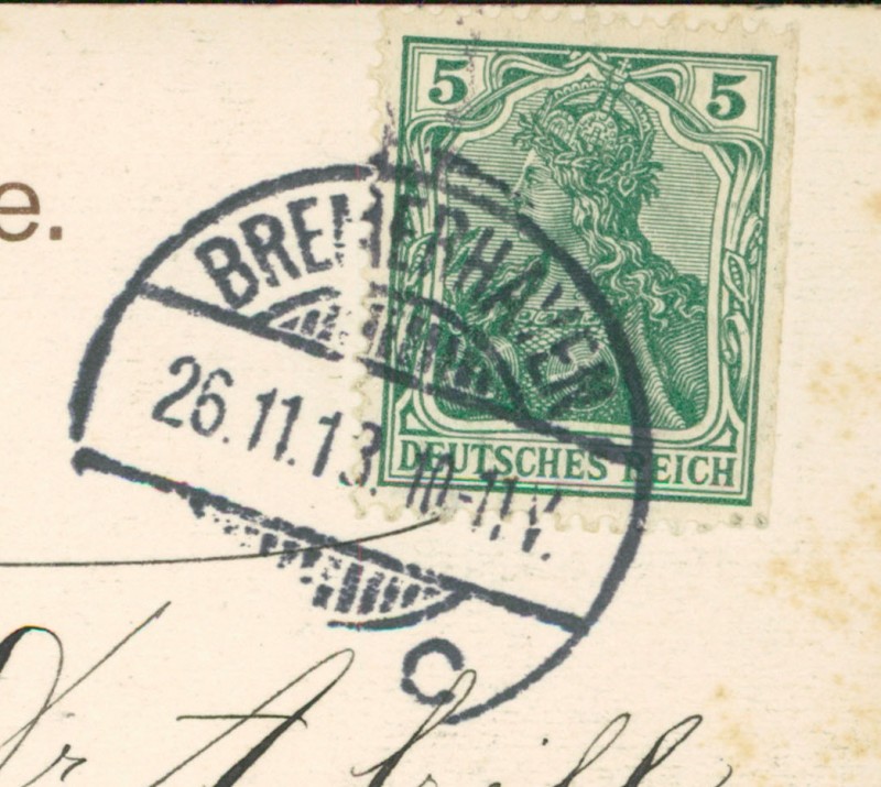 Alte Ansichtskarte aus Bremerhaven, gelaufen am 26.11.1913 von Bremerhavenn nach Frieedenau.